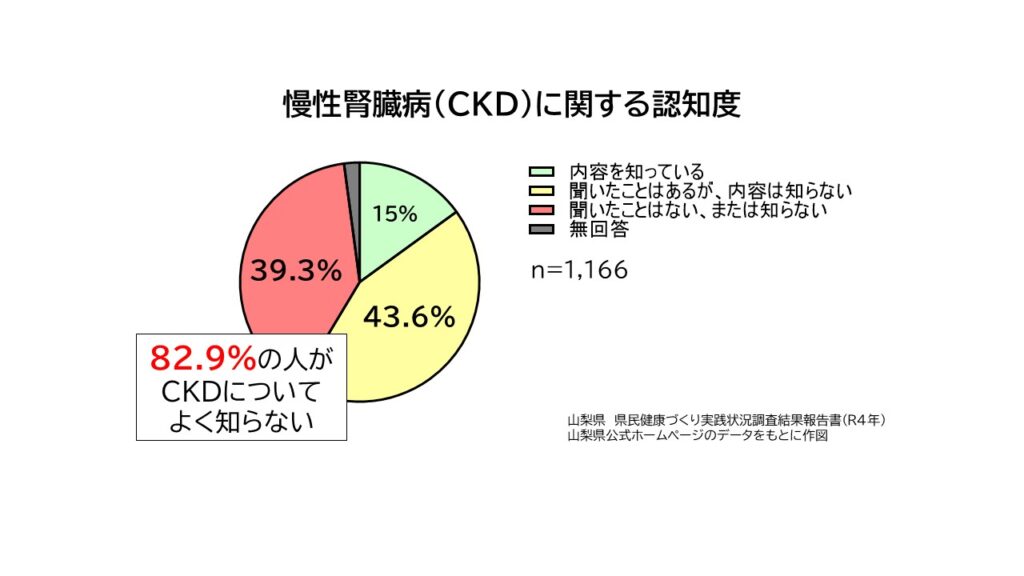 そればかりか、2022年度に山梨県が行ったアンケート調査によると、8割を超える方が「CKDについてよく知らない」という結果で、CKDの認知度向上を含めて、幅広いアプローチの必要性を実感するものでした。